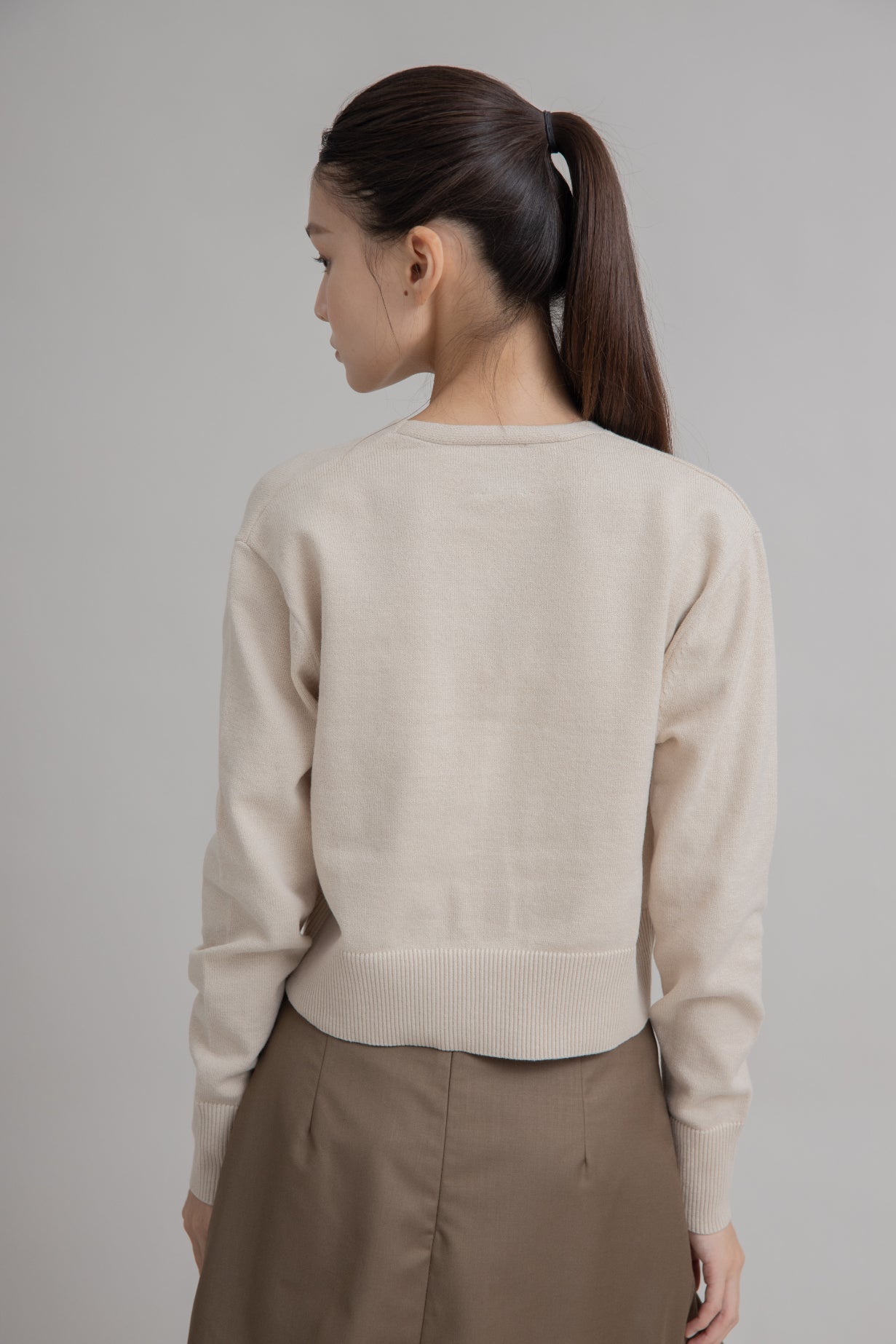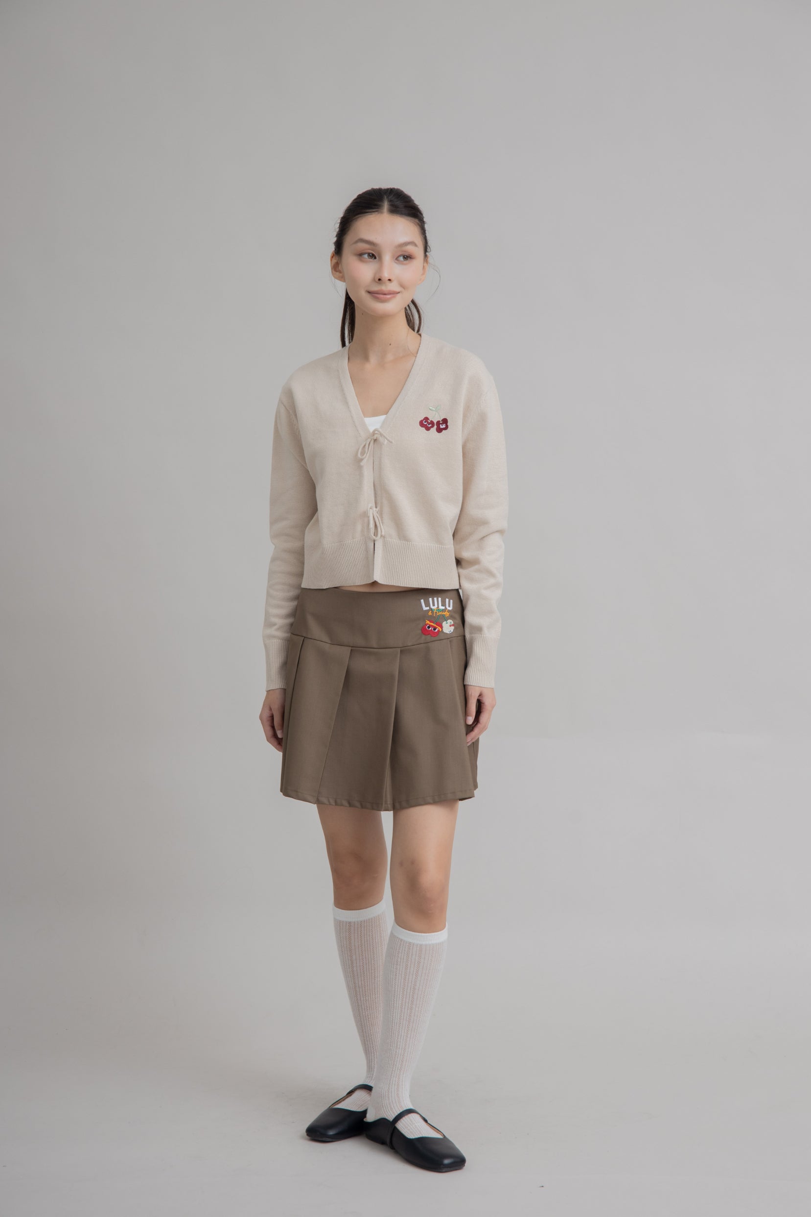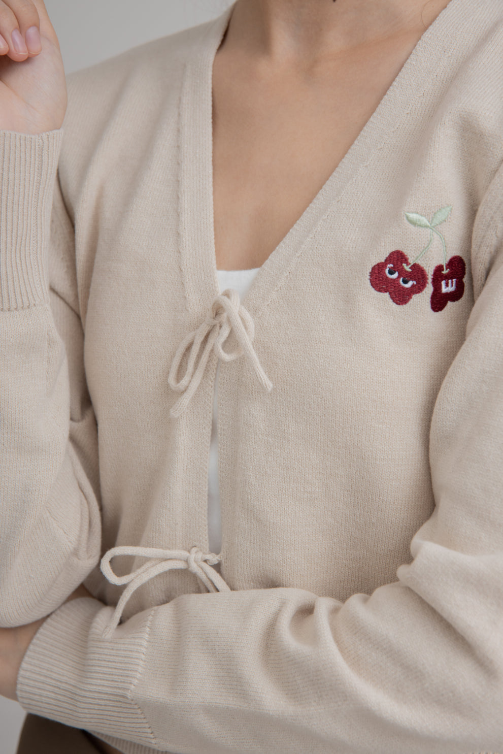 LULU Ribbon-Tie Cherry Knit Cardigan (Milky Beige)