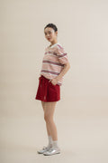 LULU Stripes Short Sleeve Knit Top (Pink Stripes)