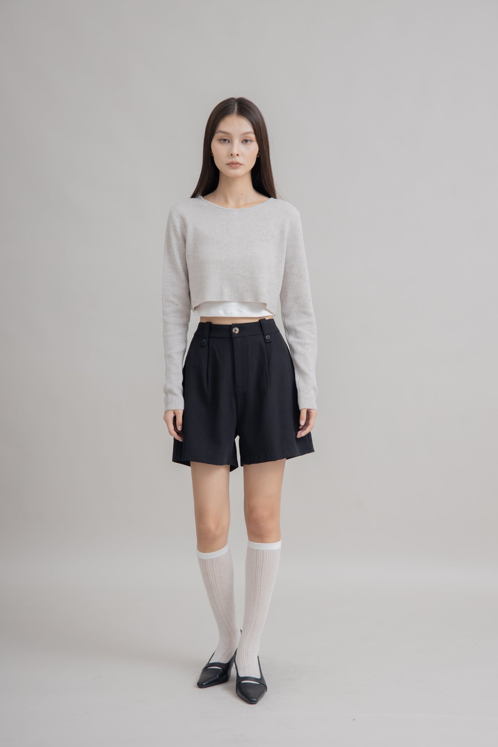 Double the style, one effortless piece. This crop knit cardigan is crafted from 100% recycled polyester and designed to be worn in two ways — with a sleek, clean front for a minimalist look, or reversed to showcase the classic button-down style. Available in Grey Melange and Teal, it’s soft, lightweight, and versatile, making it perfect for layering or as a chic standalone top.