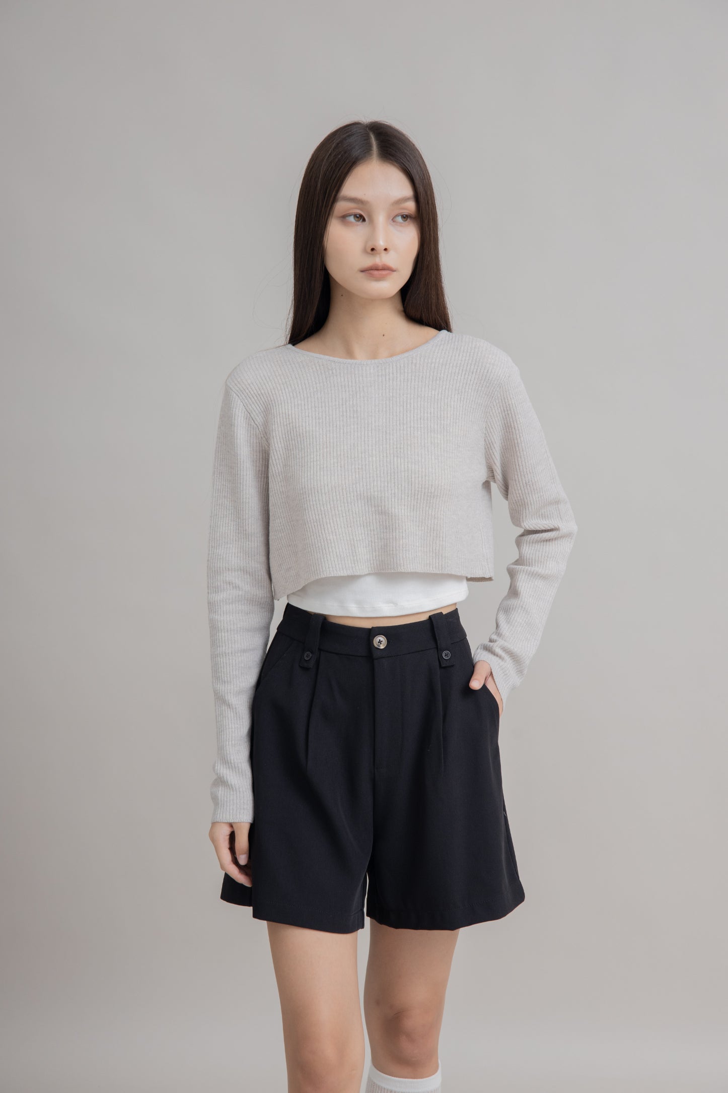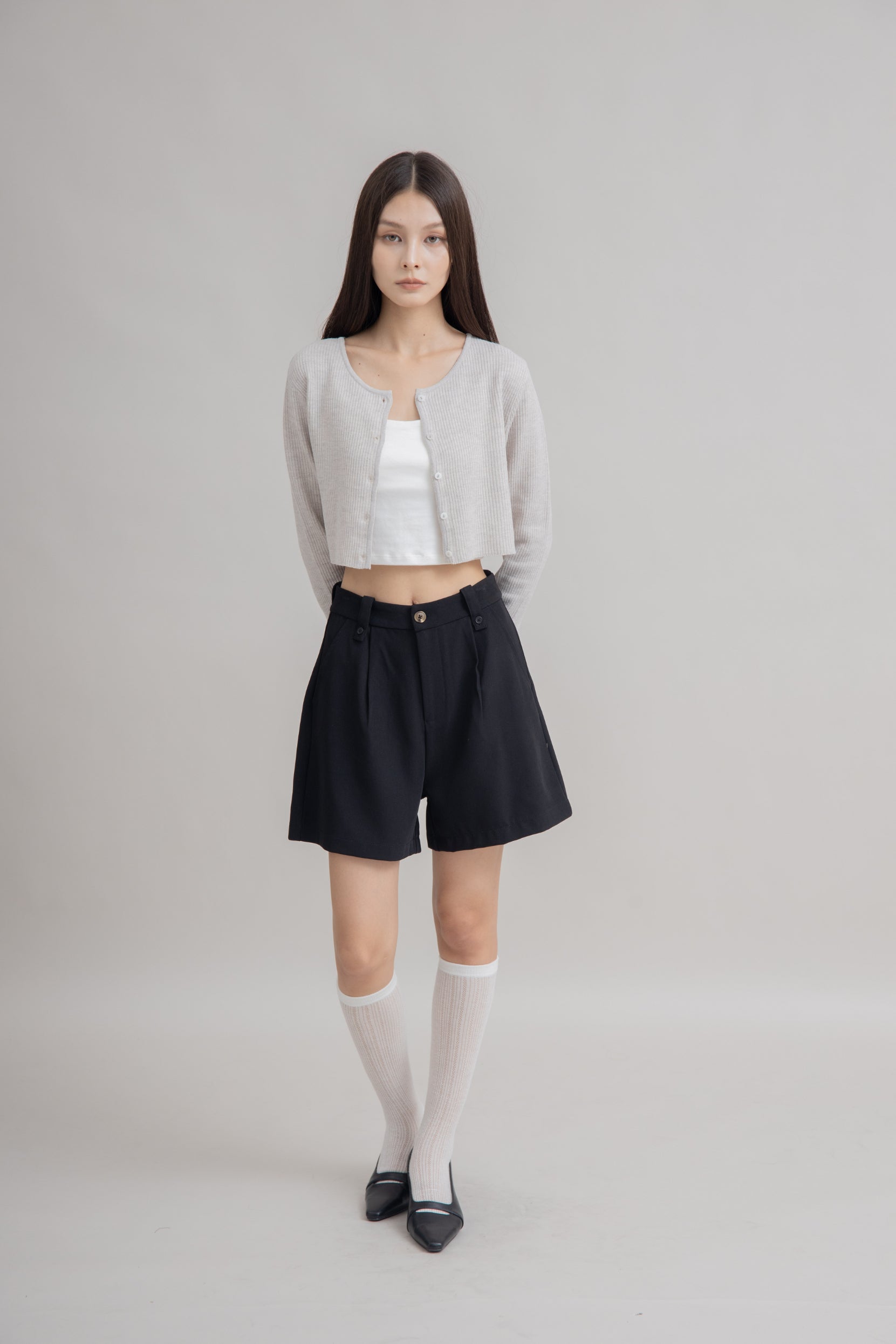 Multi-Wear Crop Knit Cardigan (Grey Melange)