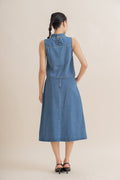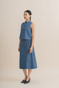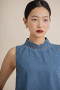 Neck Pleated Sleeveless Top (Washed Denim)