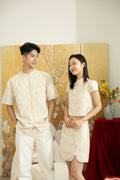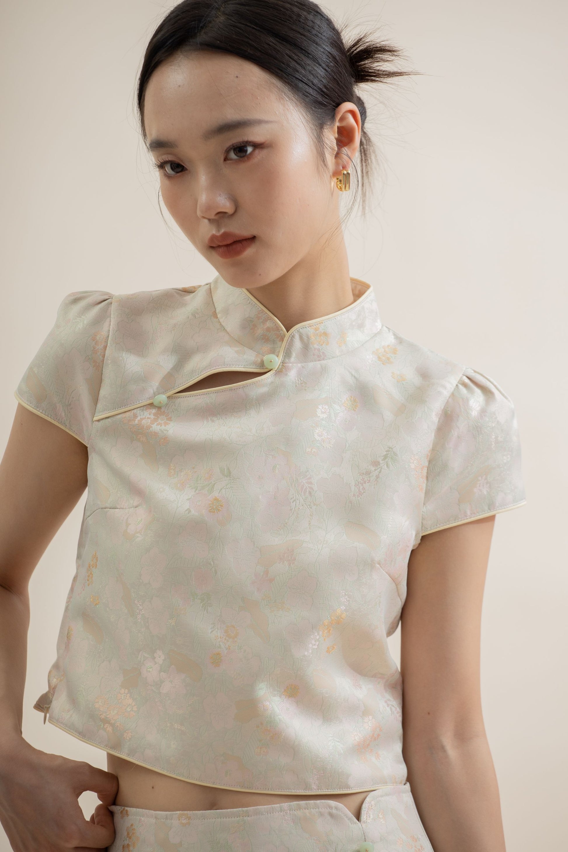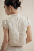 Pastel Gleam Floral Cheongsam Top (Beige Yellow)