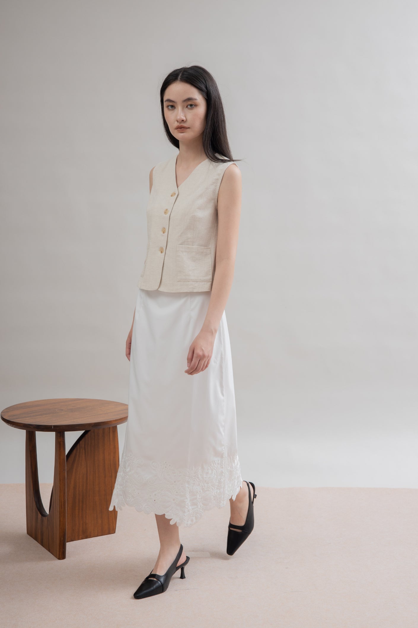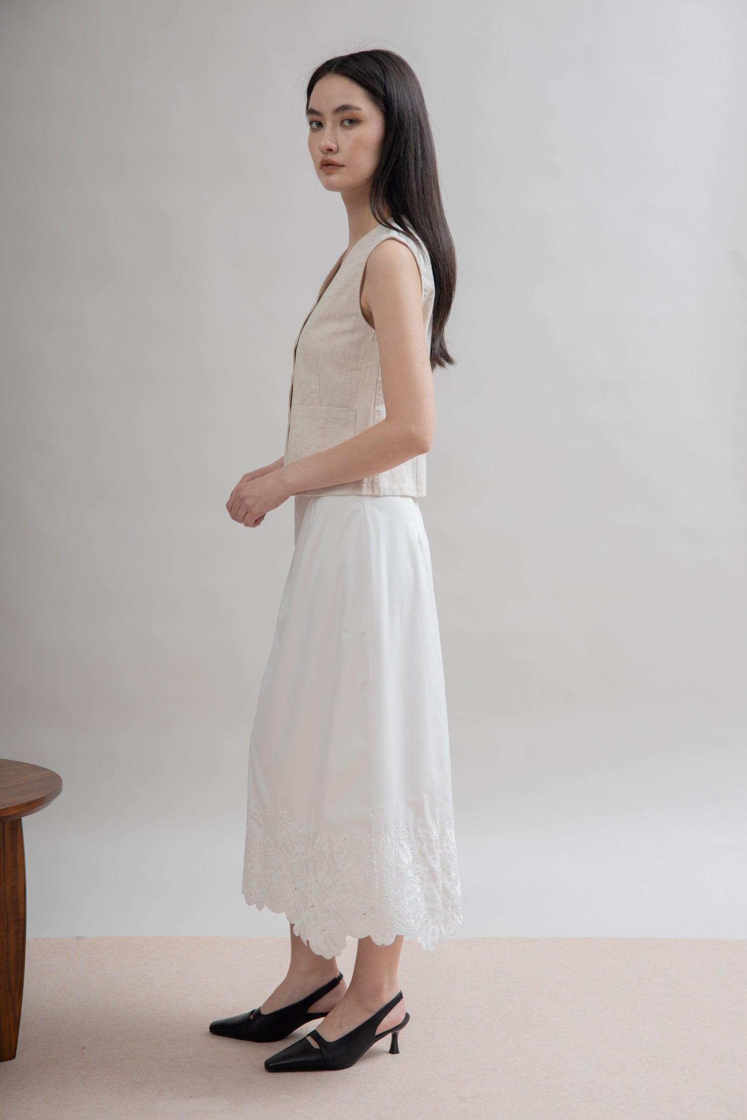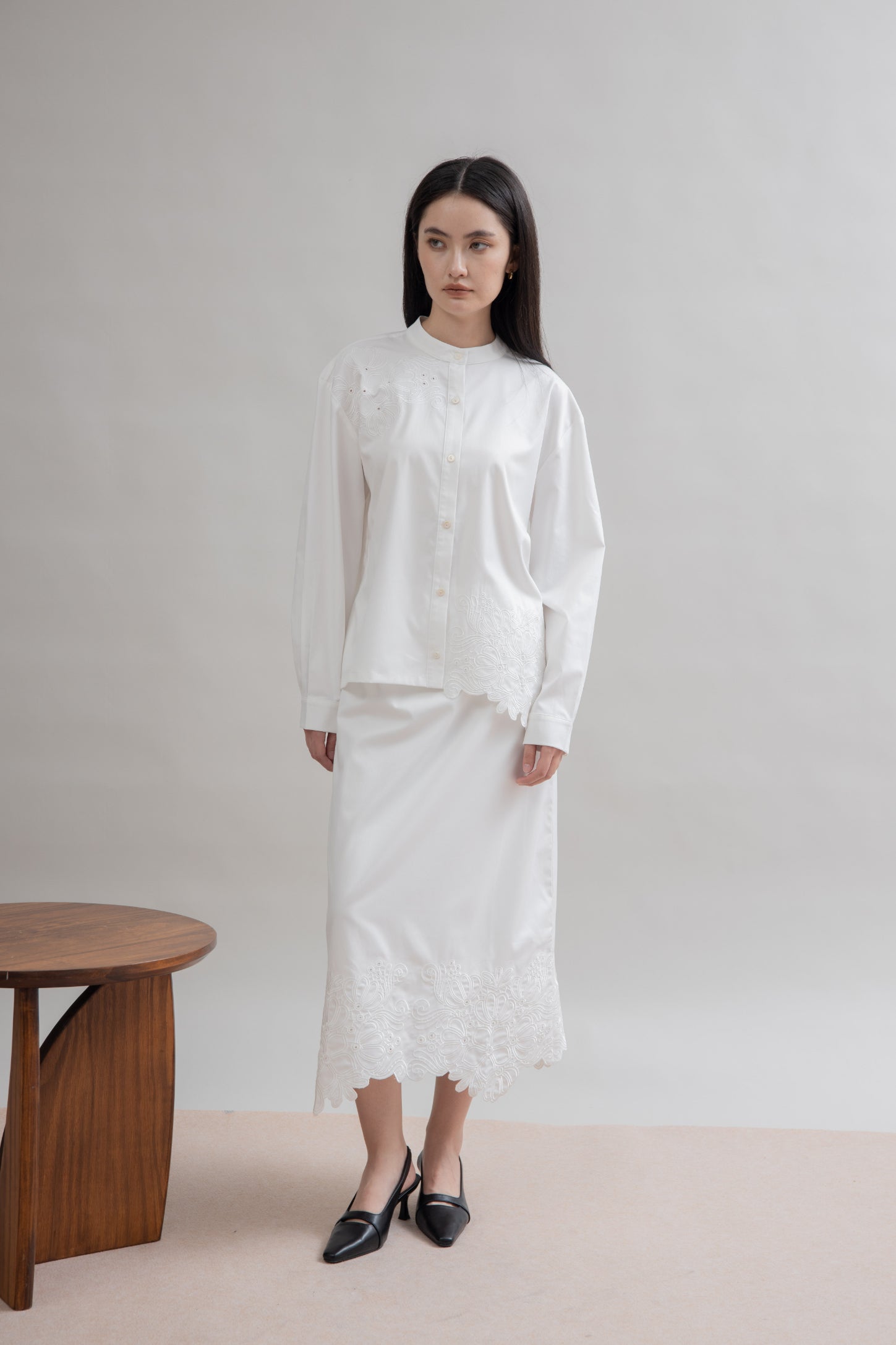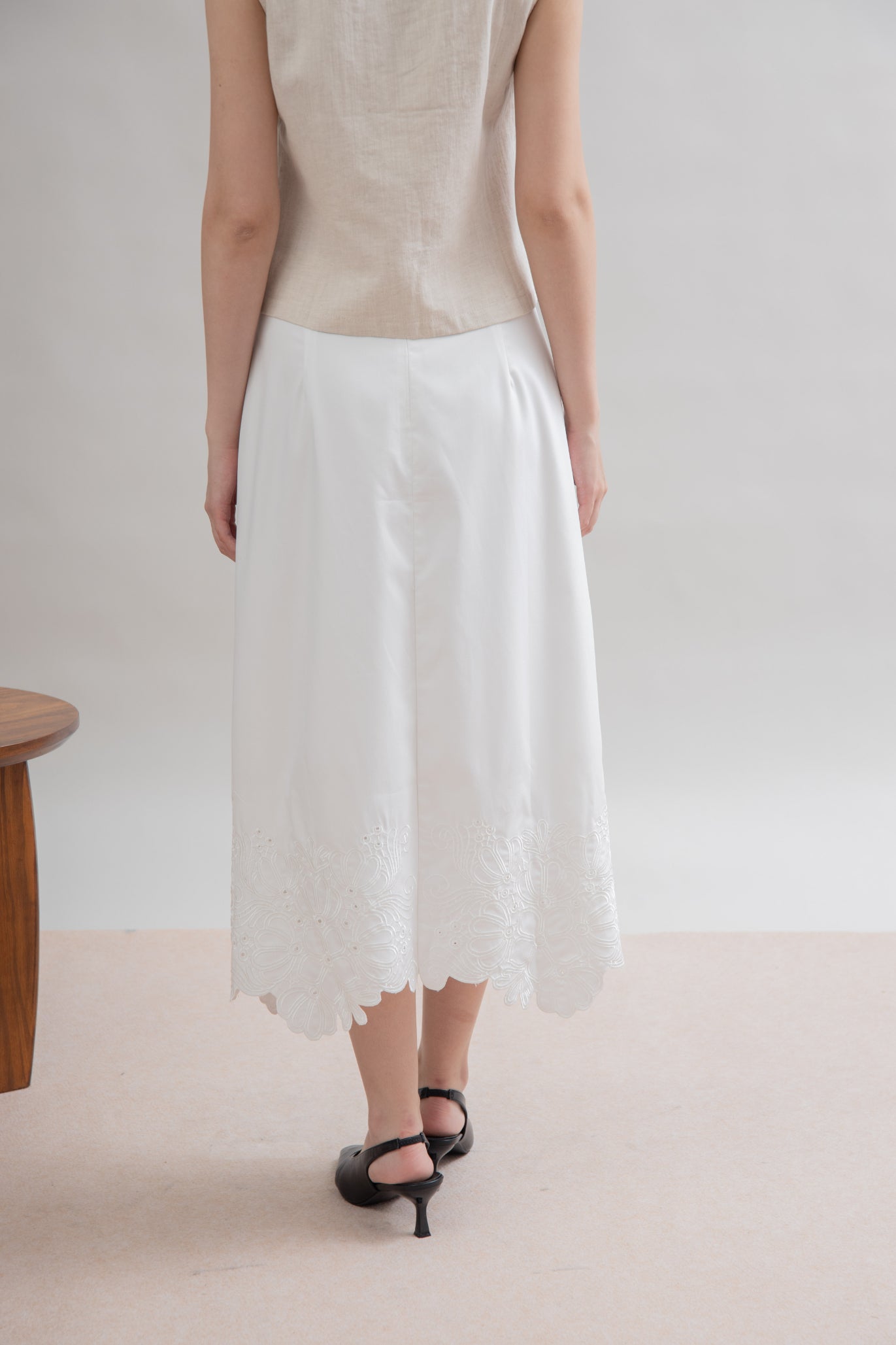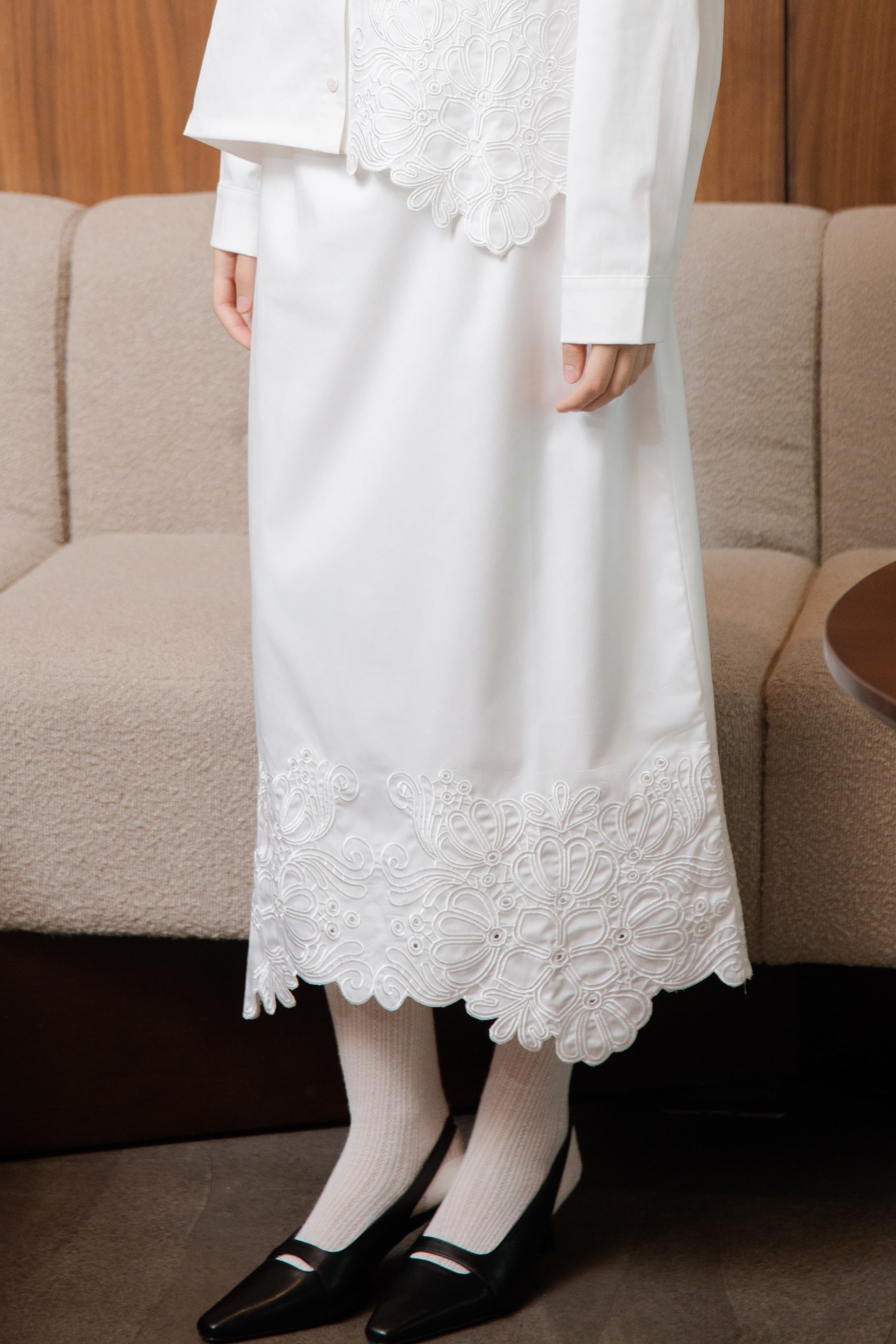 Petala Embroidery Long Skirt (Ivory)