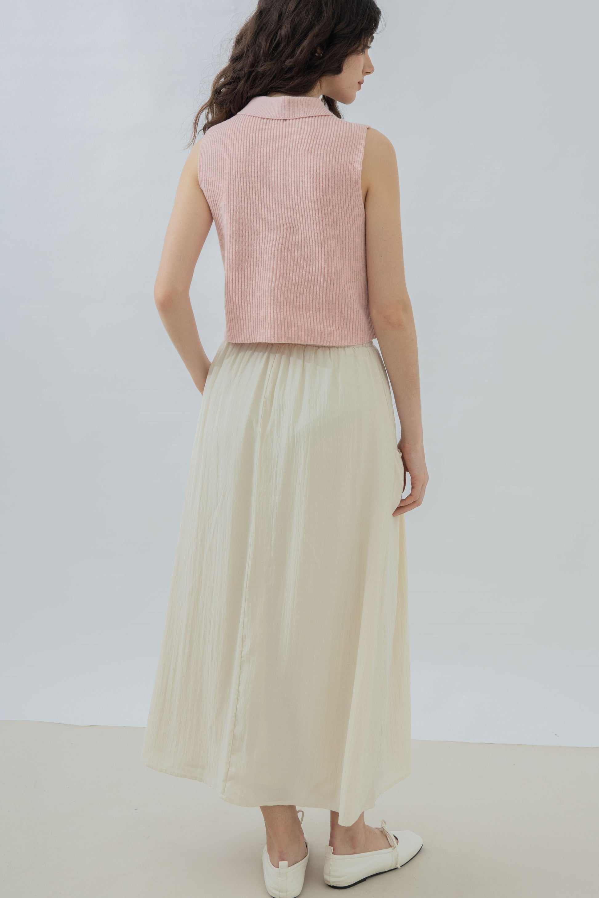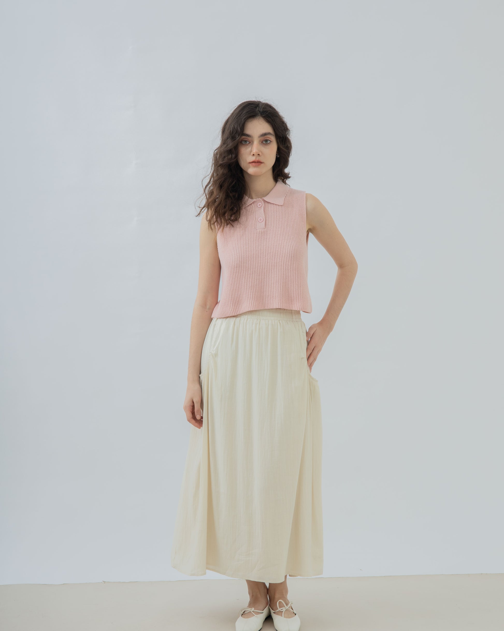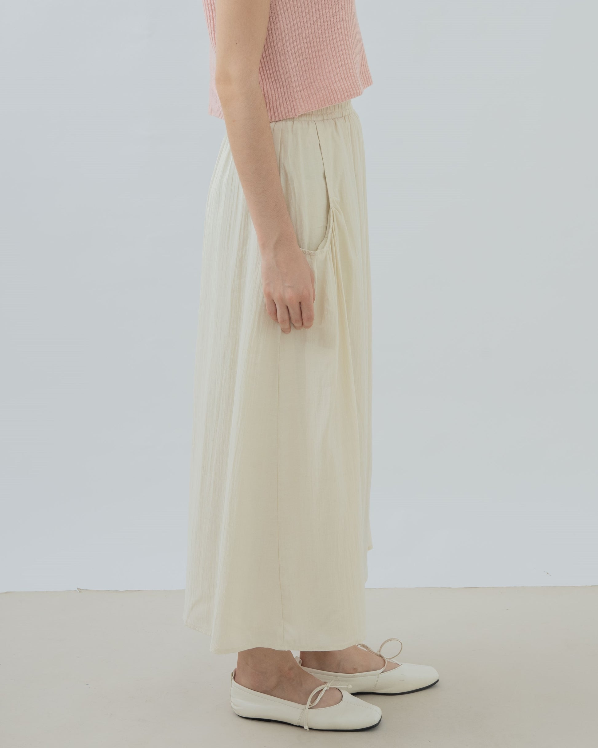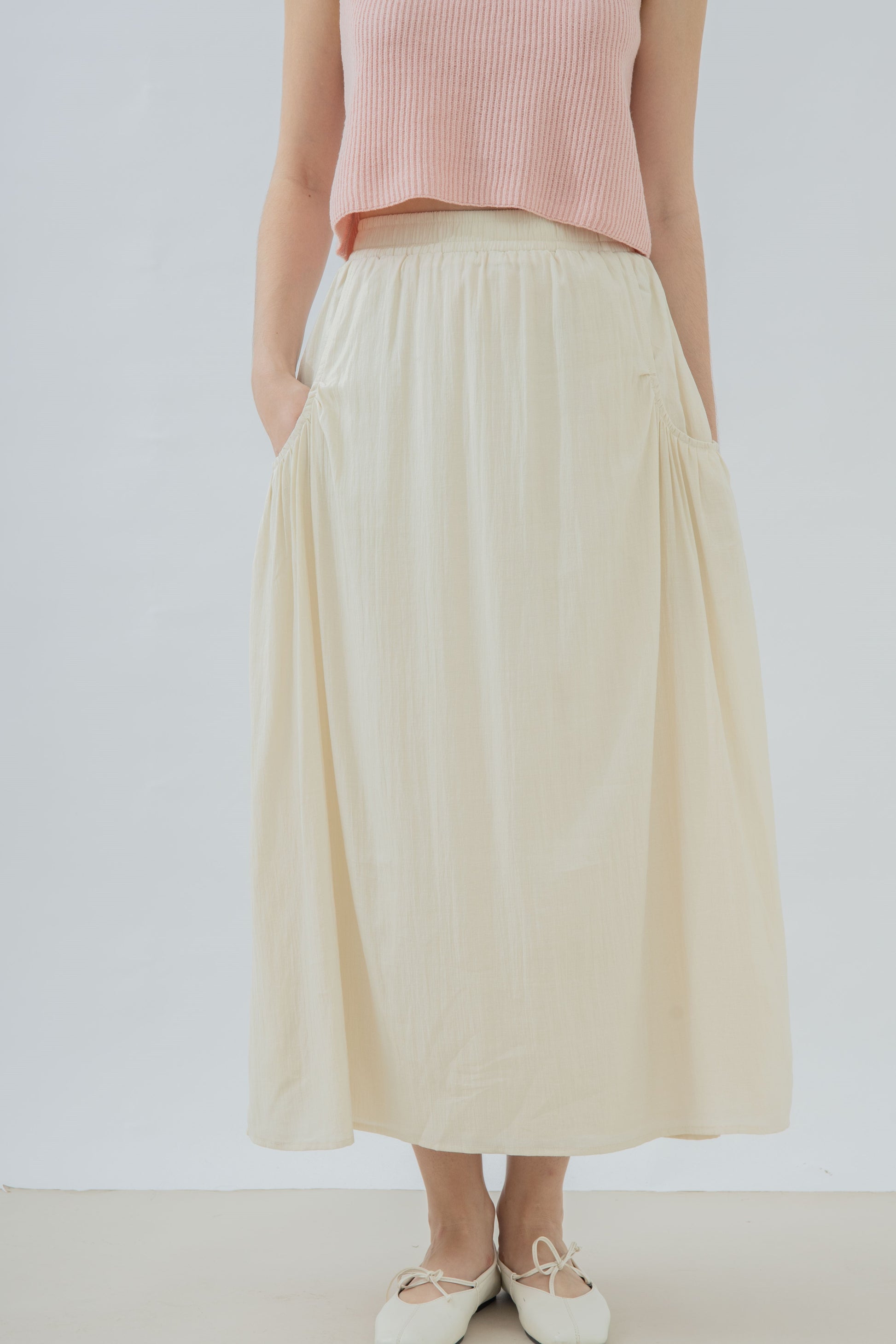 Pocket Detail Elastic Flare Skirt (Beige)