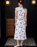 Inspired by classic porcelain patterns, the Porcelain Grace Overlap Maxi Skirt features a fresh, timeless floral design on 100% polyester fabric. The overlap cut and hidden back zipper create an elegant silhouette that seamlessly blends traditional charm with modern style. A graceful piece that brings sophistication and a touch of heritage to any wardrobe.