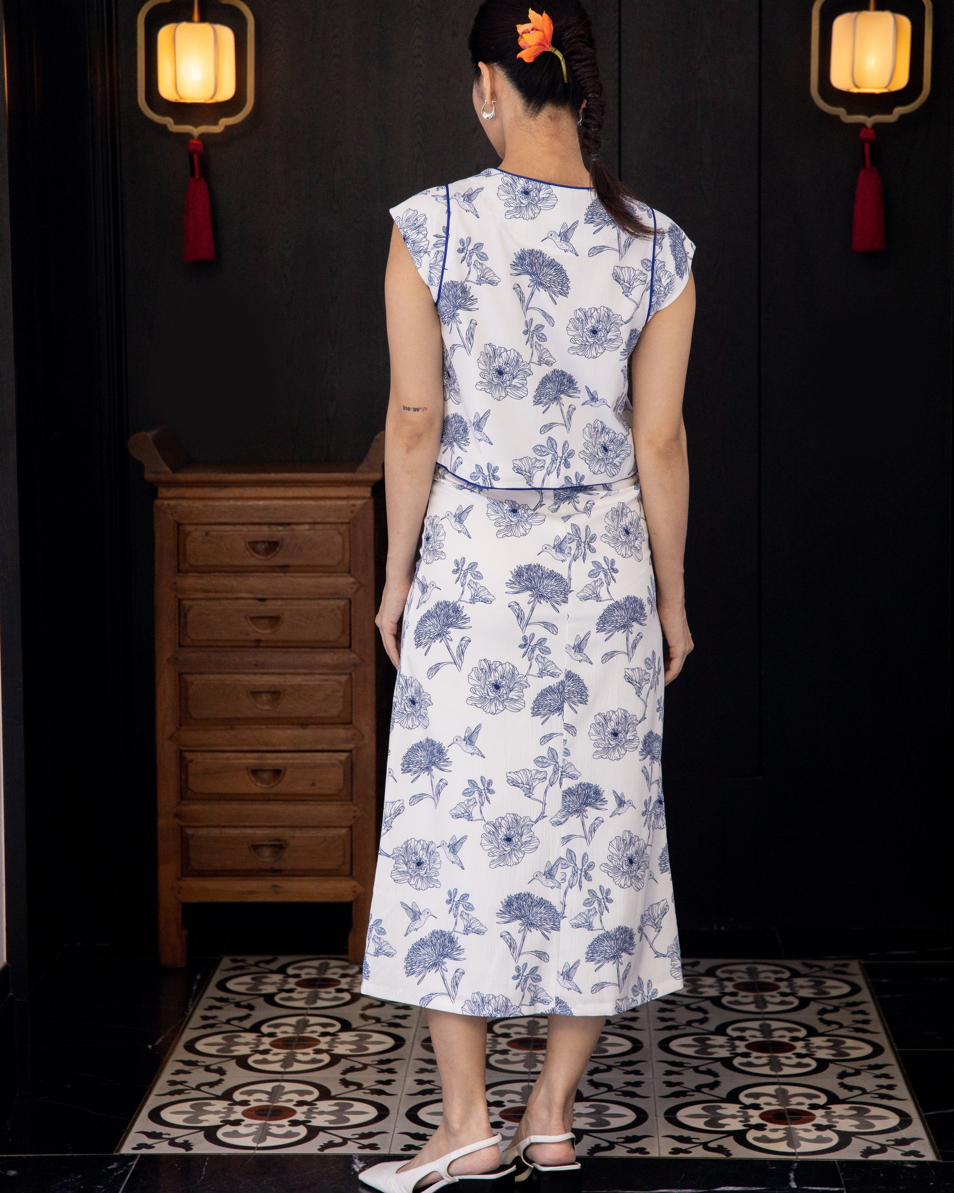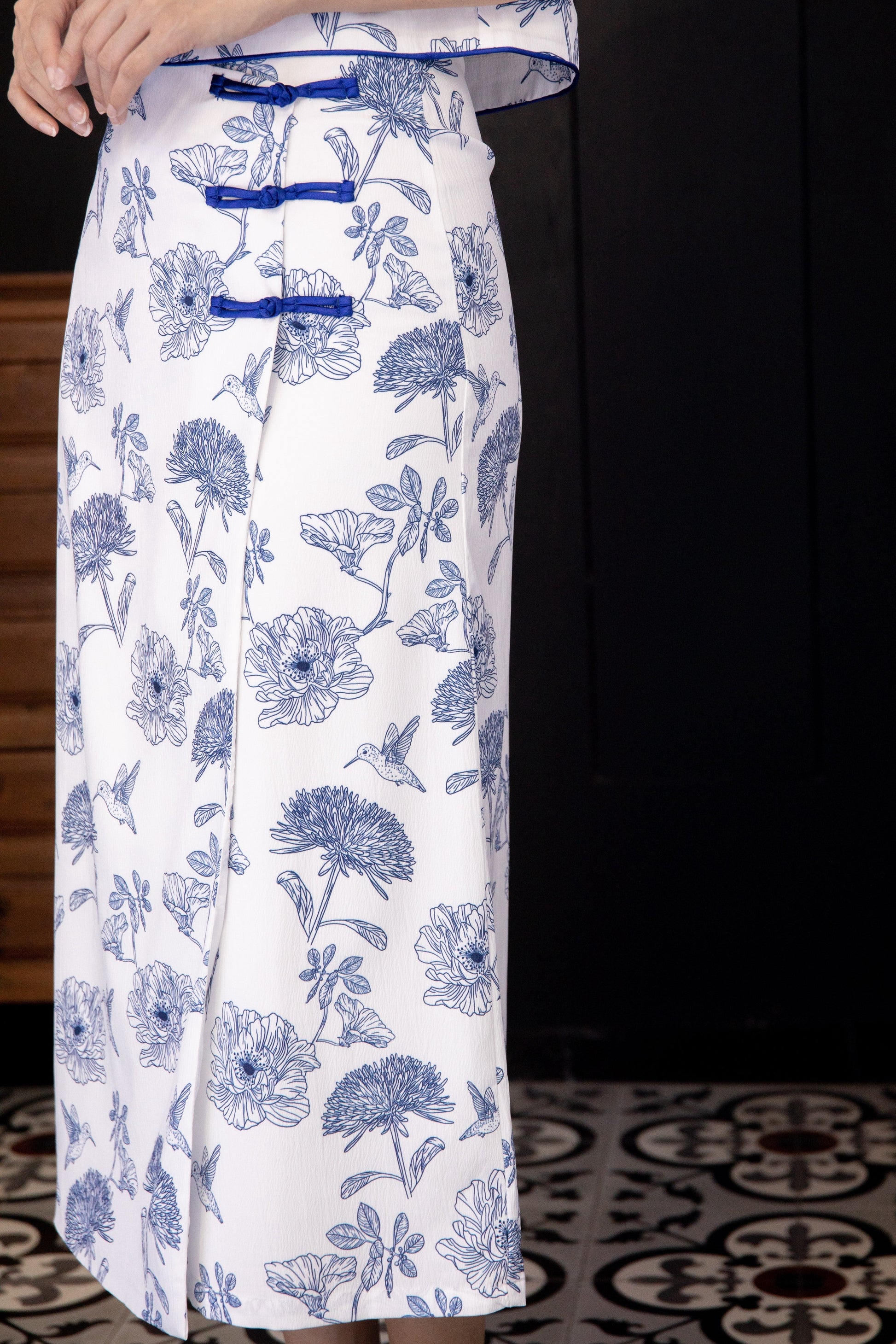 Porcelain Grace Overlap Maxi Skirt (Printed)