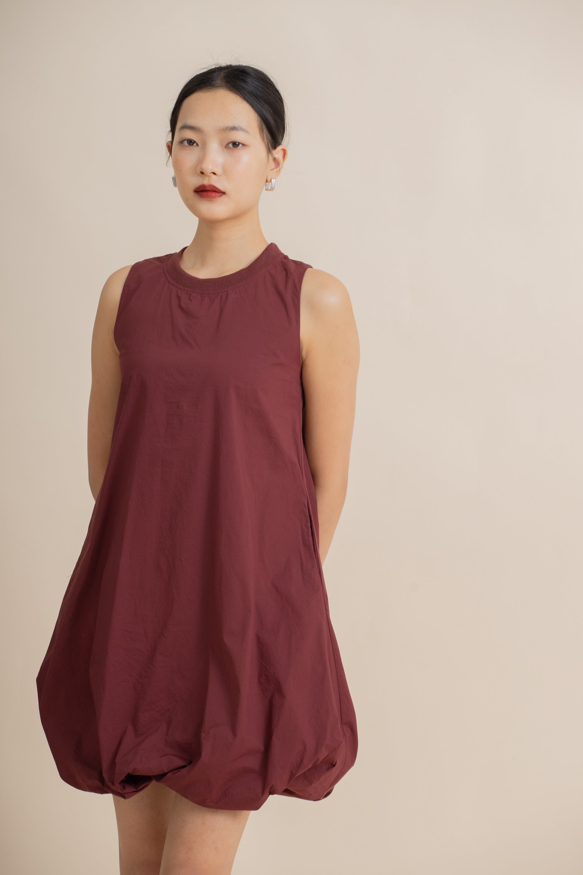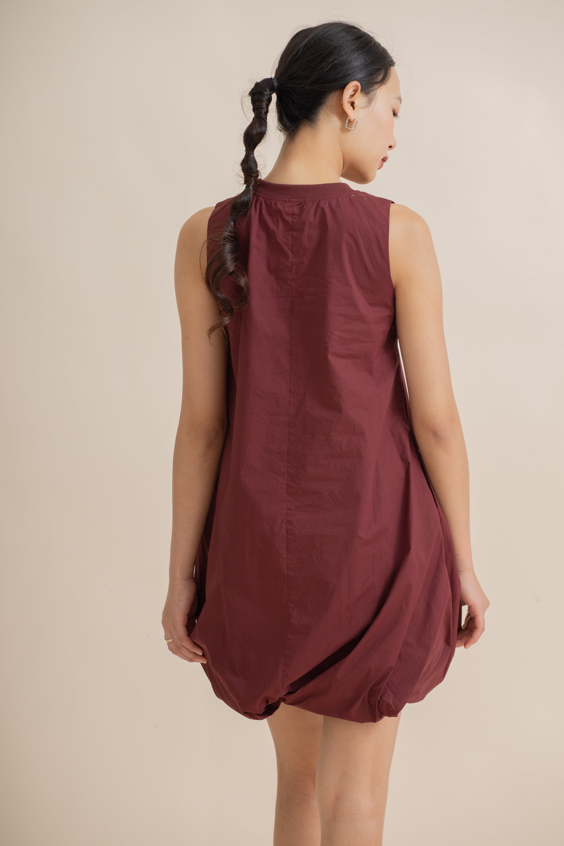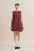Puffy Sleeveless Mini Dress (Maroon)