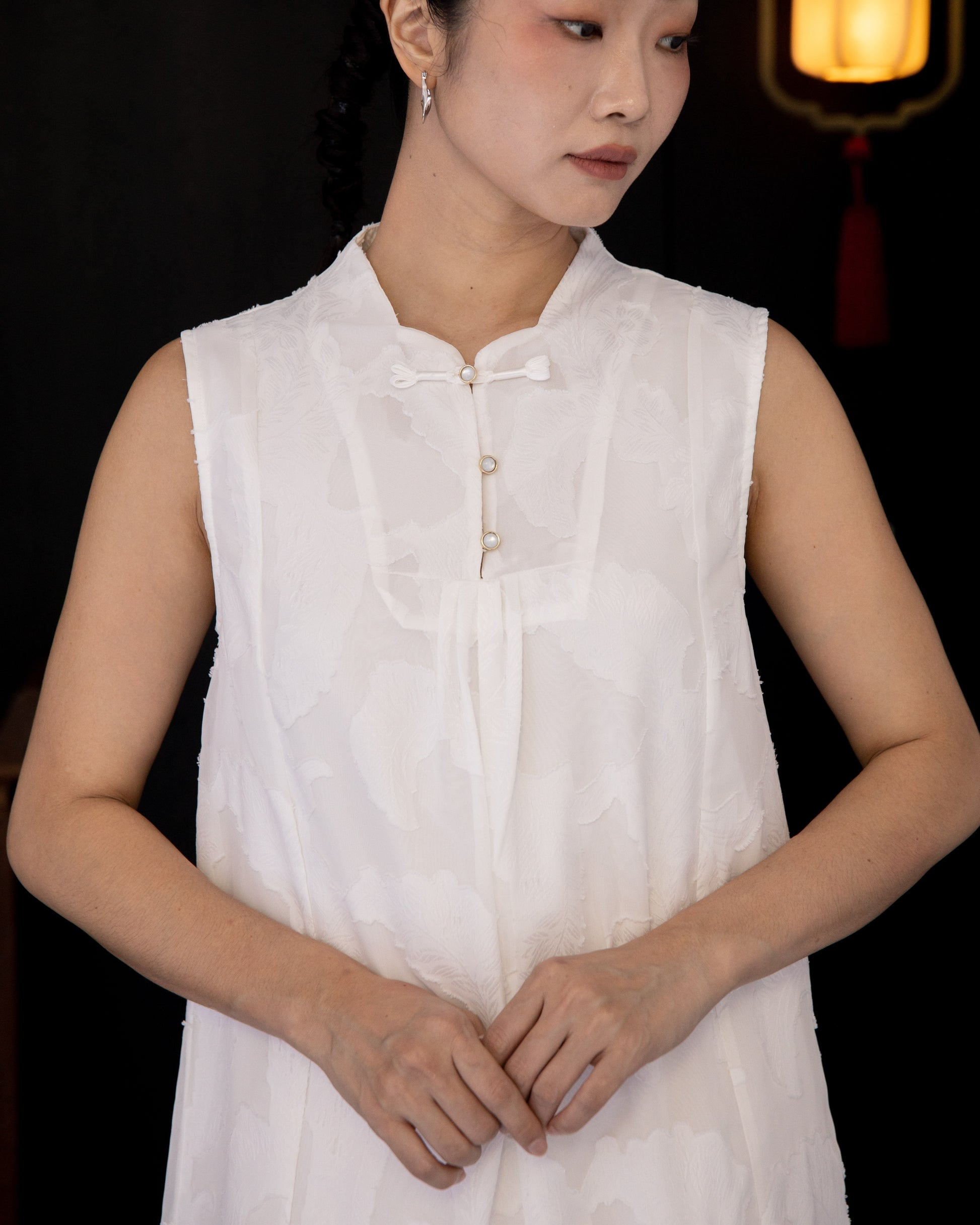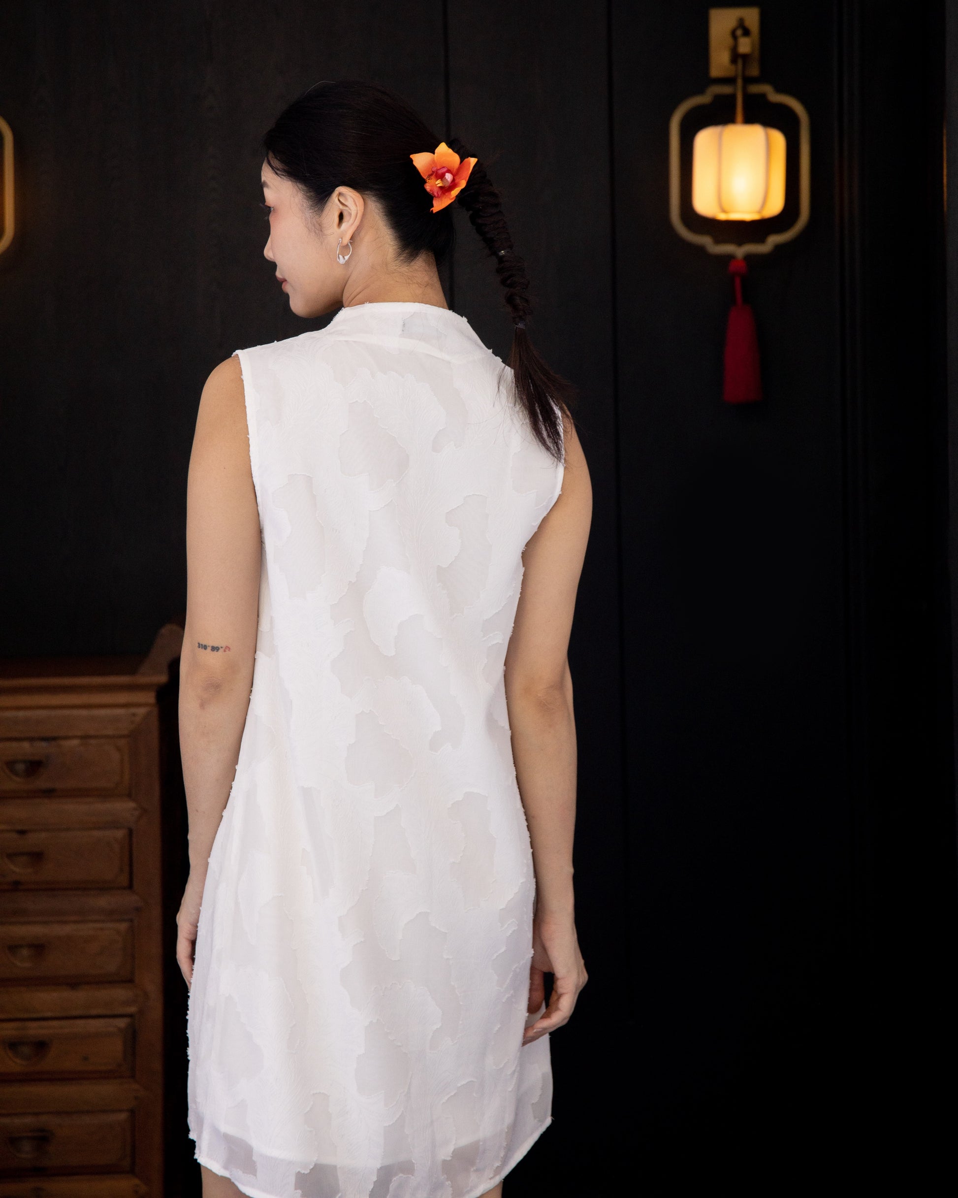 Pure Elegance Chiffon Embroidery Cheongsam Dress (White)