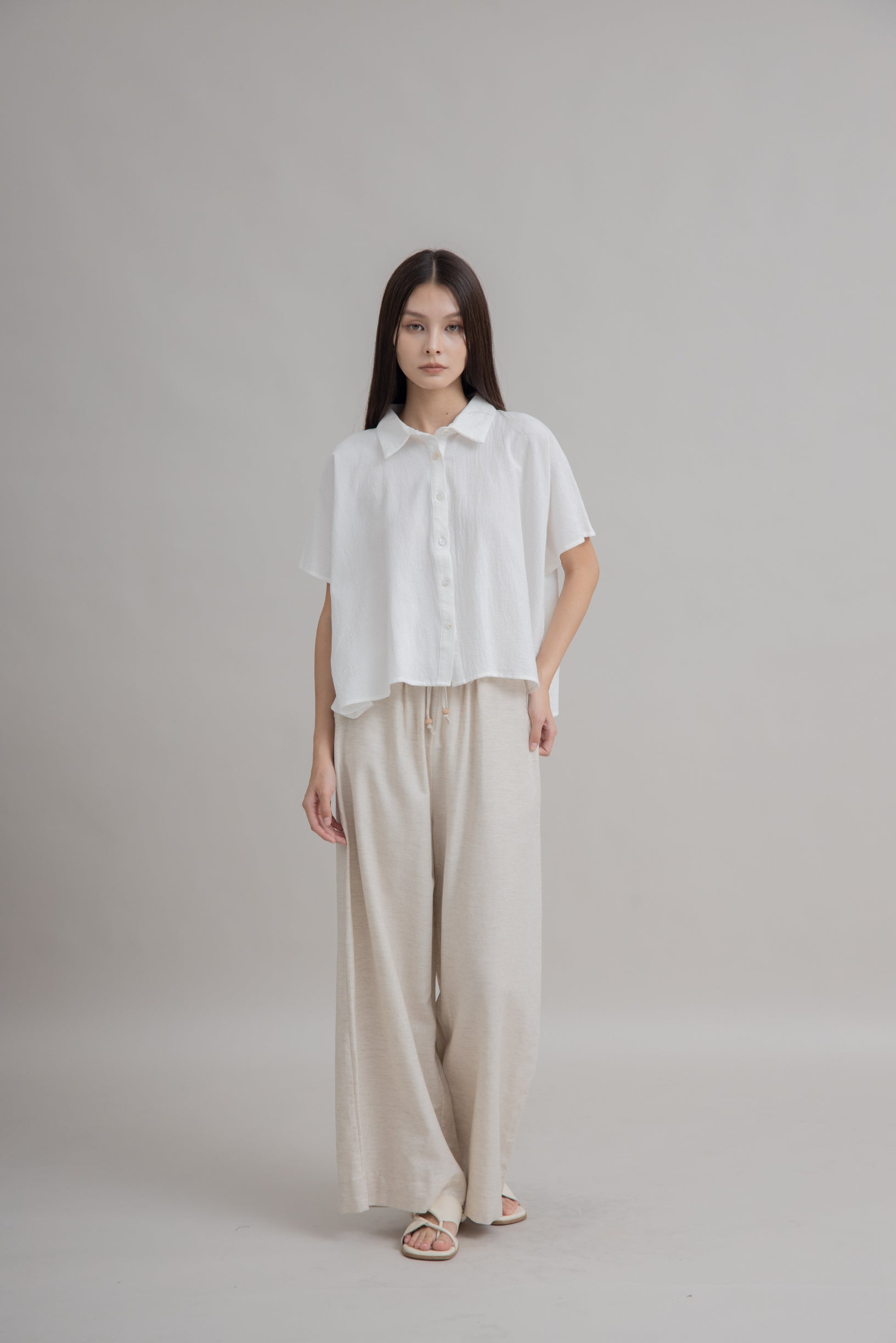 Designed for ease and everyday versatility, these relaxed-fit pants feature a comfortable drawstring waist and a fluid, laid-back silhouette. Made from a breathable blend of 40% Cotton, 40% Tencel, and 20% Linen, they offer a soft, lightweight feel that moves effortlessly with you.