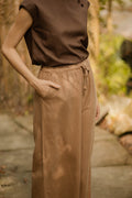 Designed for ease and everyday versatility, these relaxed-fit pants feature a comfortable drawstring waist and a fluid, laid-back silhouette. Made from a breathable blend of 40% Cotton, 40% Tencel, and 20% Linen, they offer a soft, lightweight feel that moves effortlessly with you.