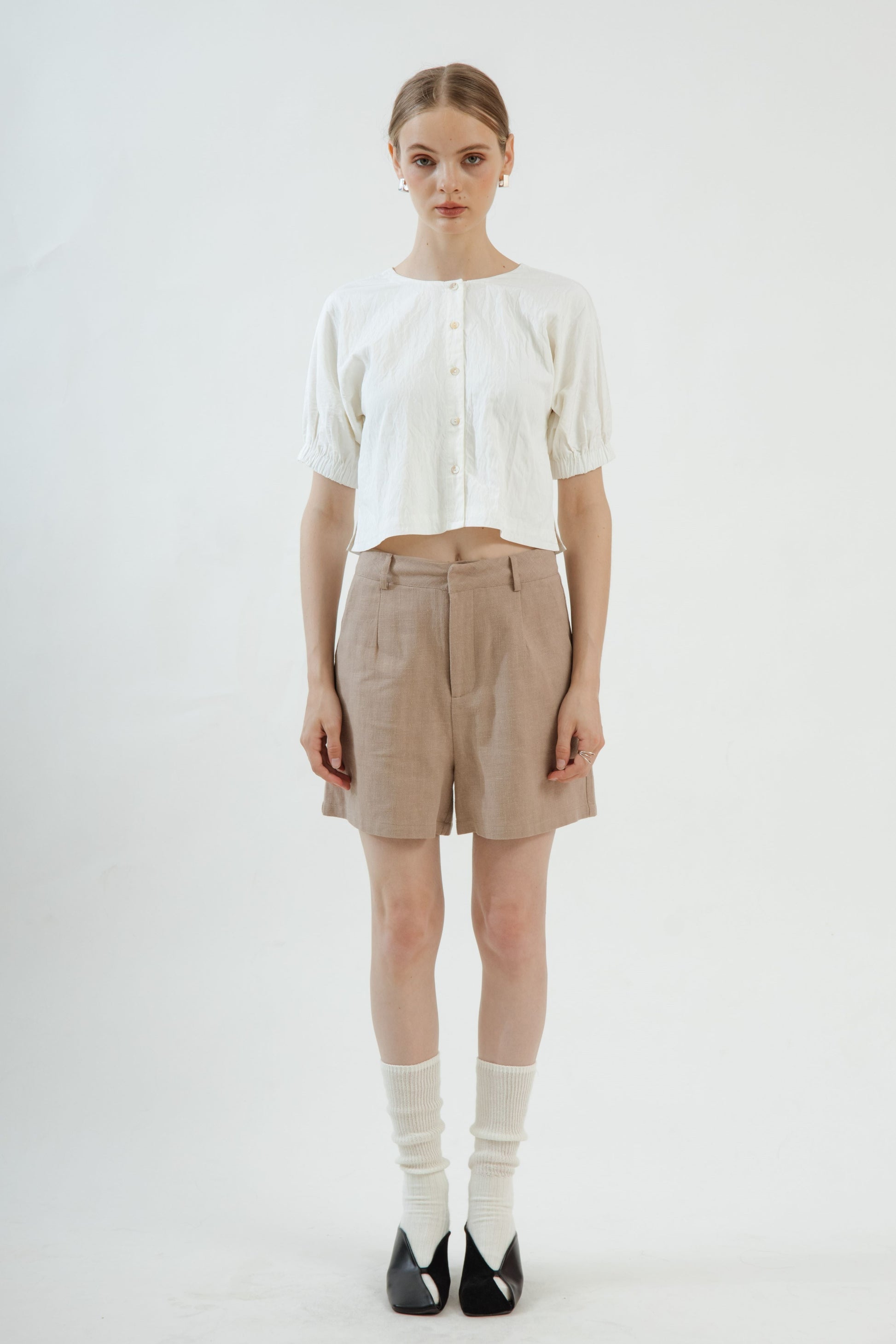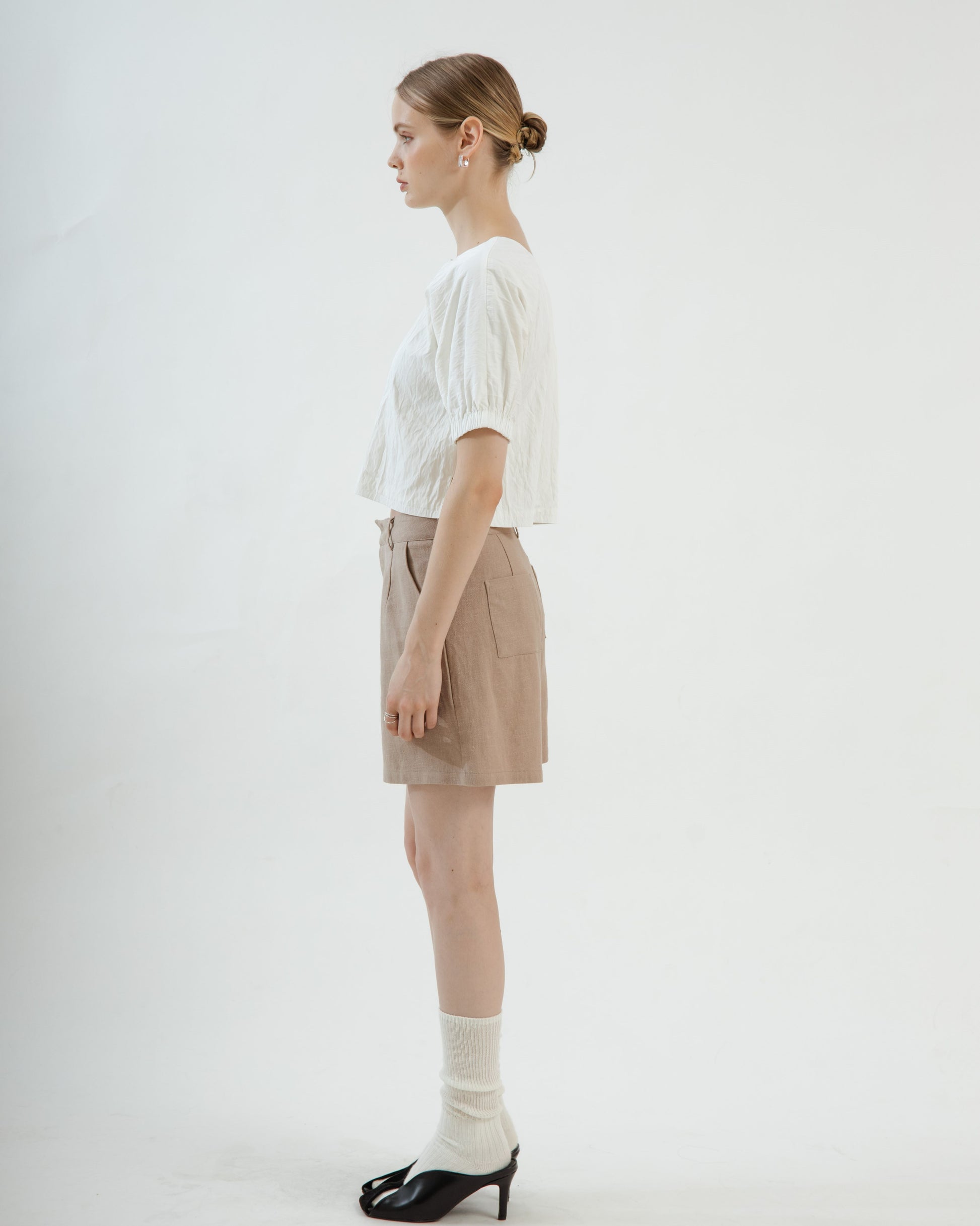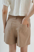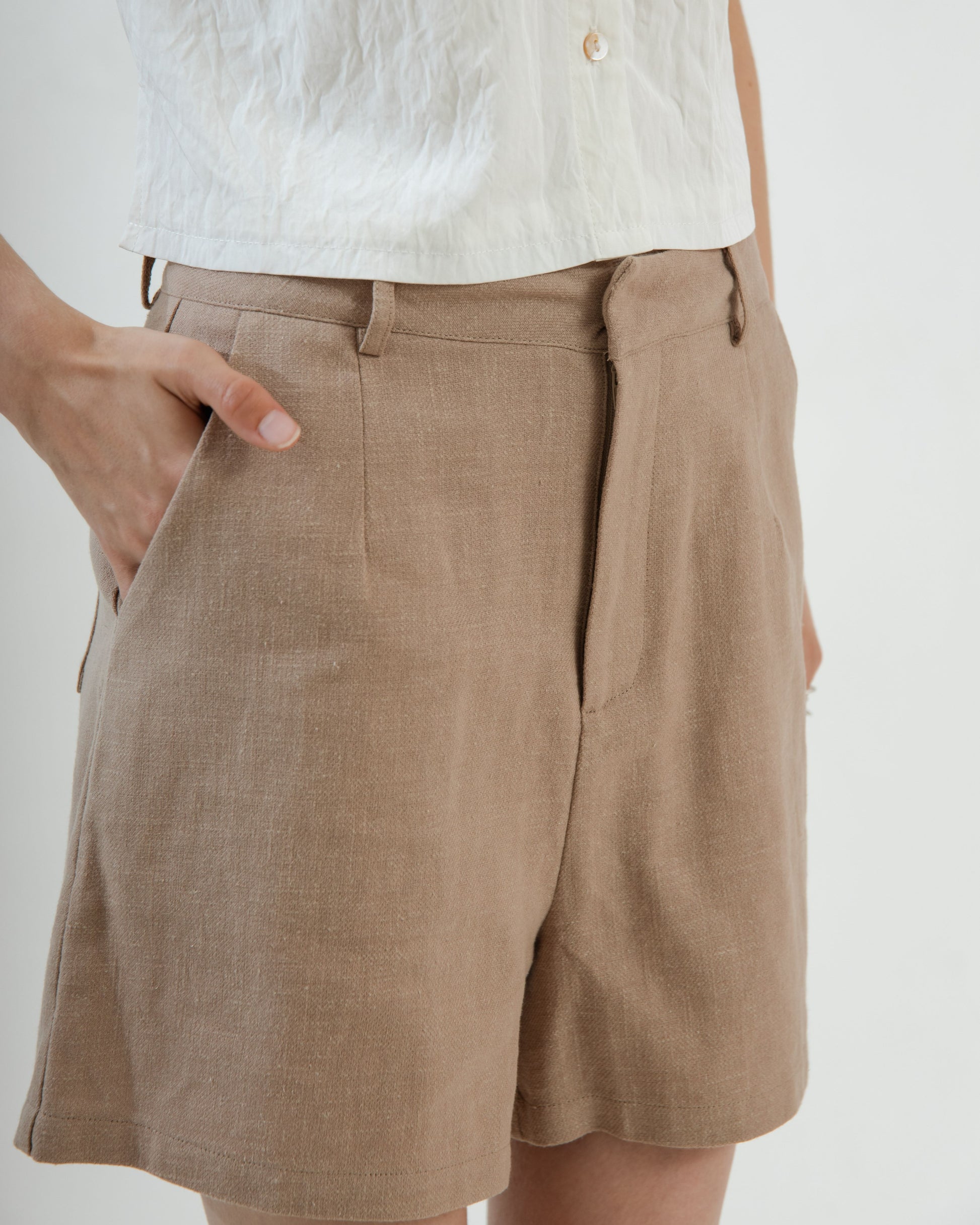 Relaxed High Waist Linen Shorts (Khaki Brown)