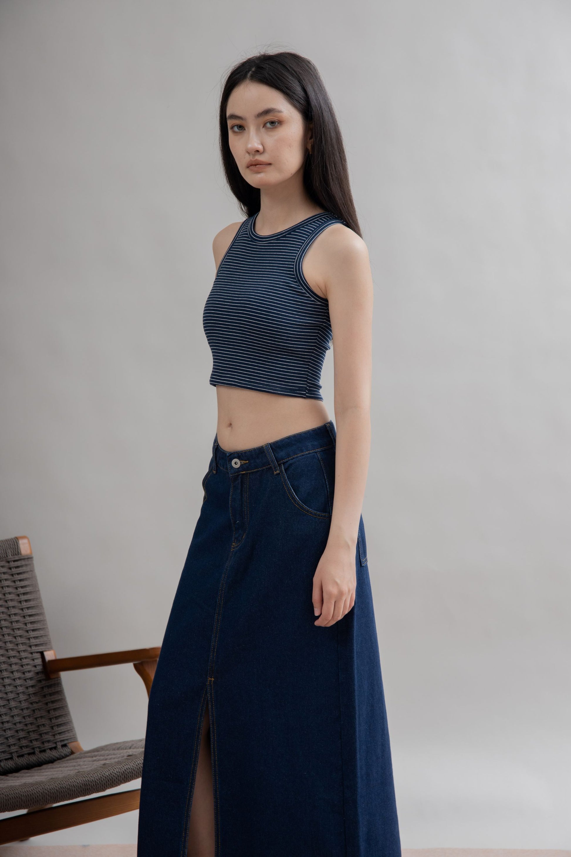 With its built-in padding, there’s no need to worry about layering bras or visible straps – just slip it on and go. The subtle stripes bring a timeless, versatile charm that pairs effortlessly with jeans, shorts, or skirts.