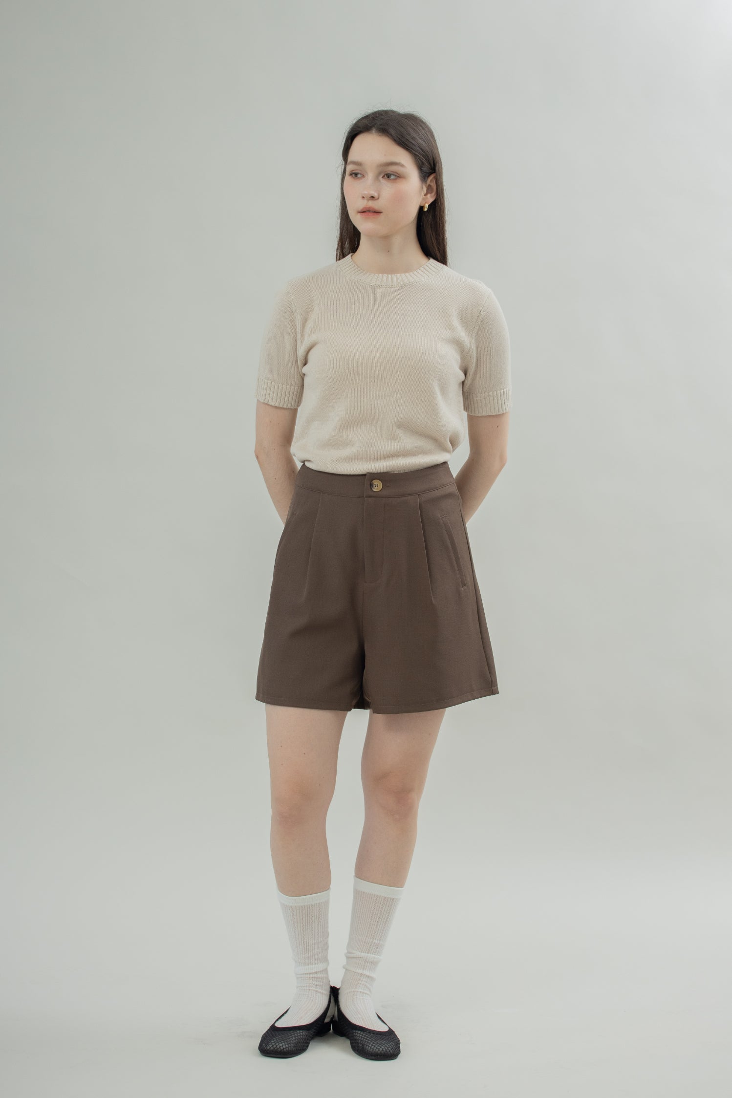 These pleated shorts feature clean front pleats that add subtle dimension while maintaining a flattering fit. Crafted from 95% Polyester, 5% Spandex, they provide lightweight structure with comfortable stretch. Pair them with the matching vest for a coordinated look or mix and match for effortless styling.