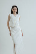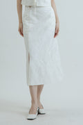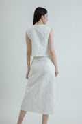 Side Button Textured Skirt (White)