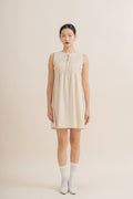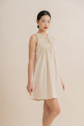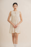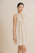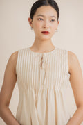 Sleeveless Pintuck Ribbon Front-Tie Dress (Khaki)