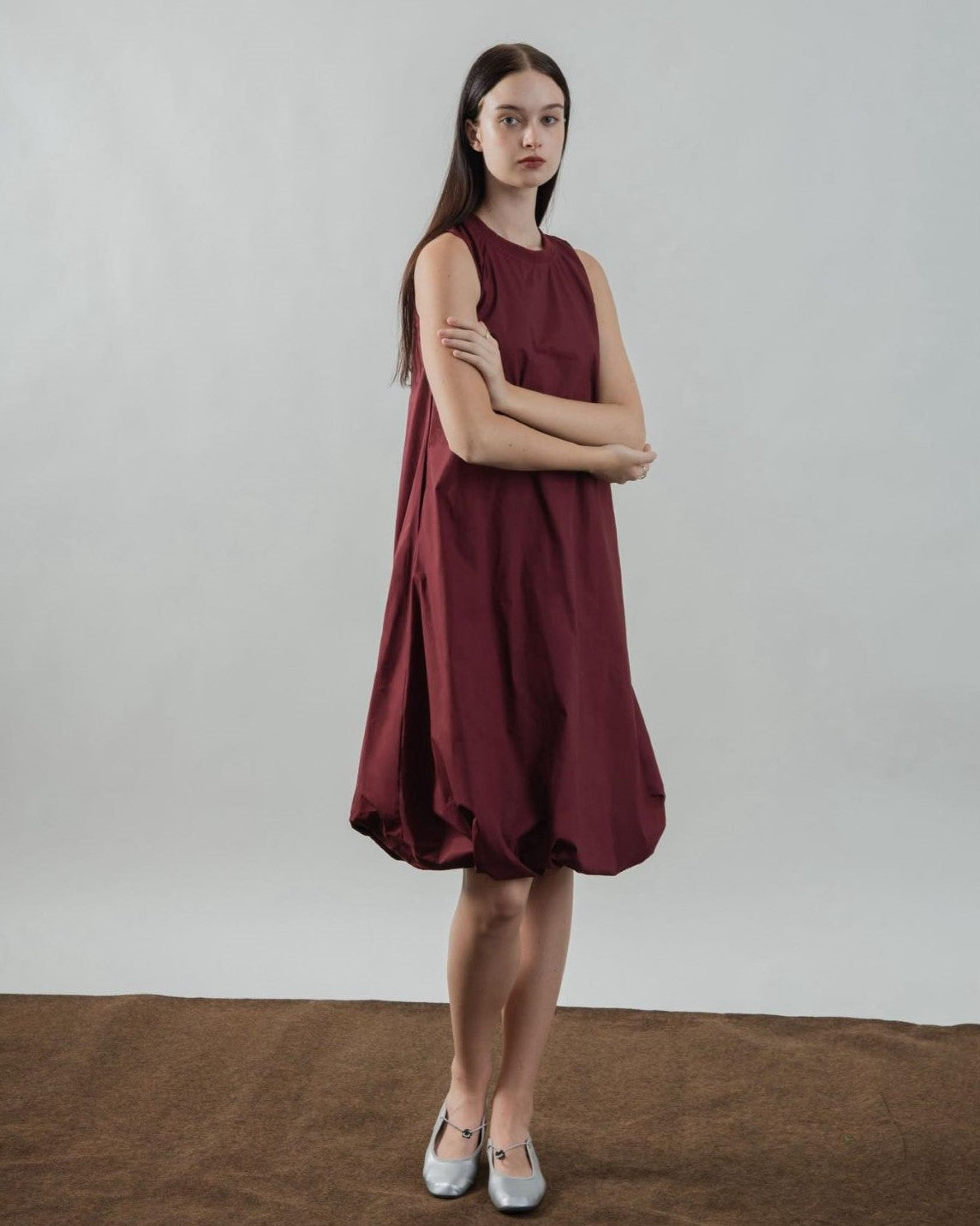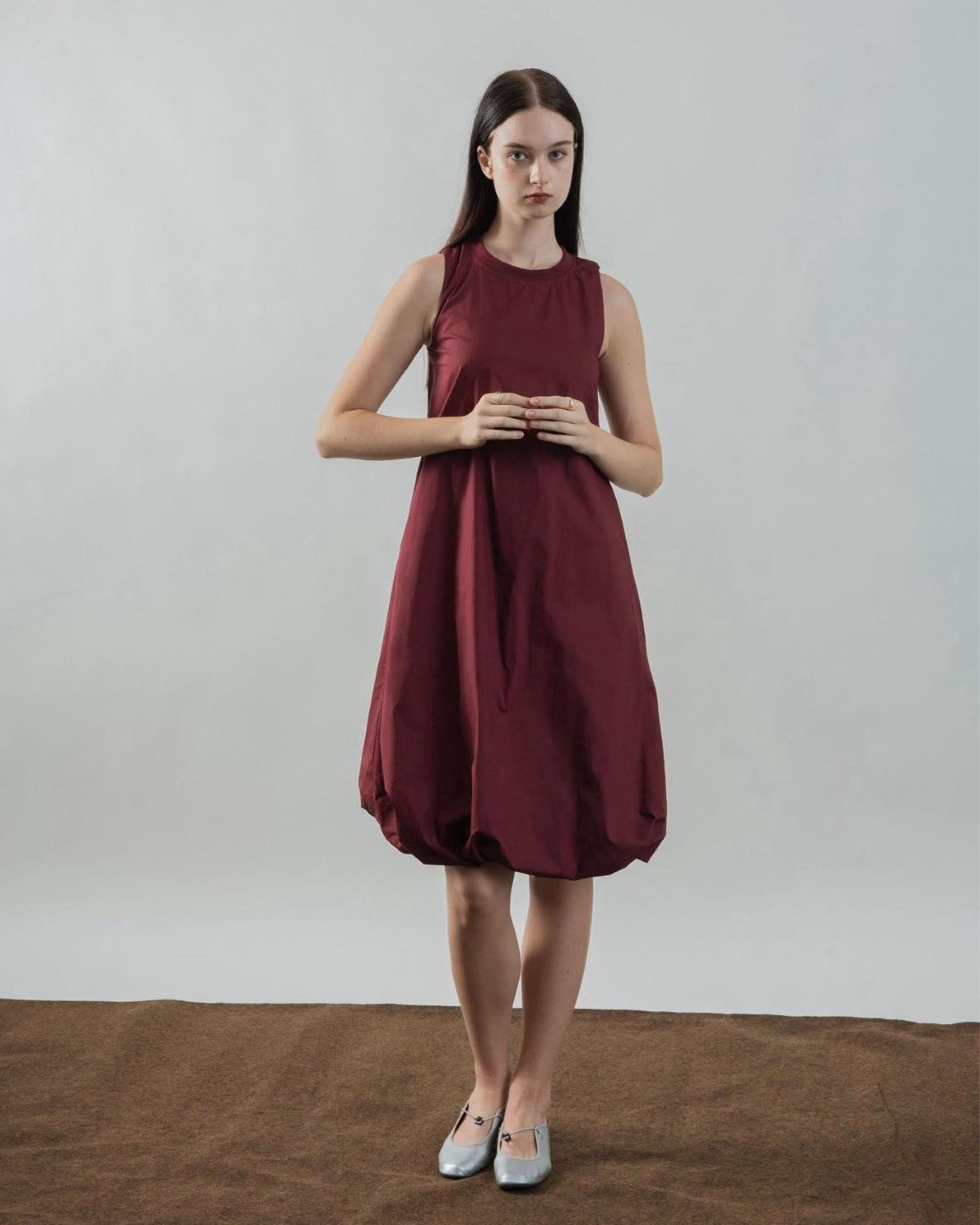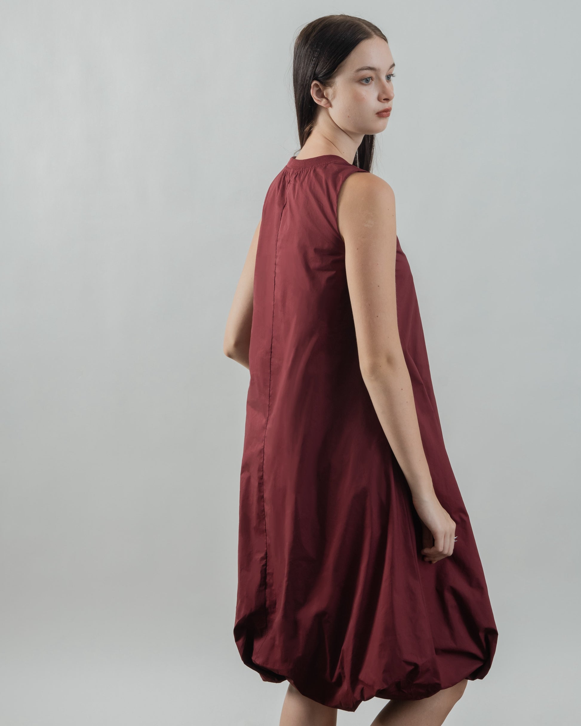Sleeveless Puffy Dress (Maroon)