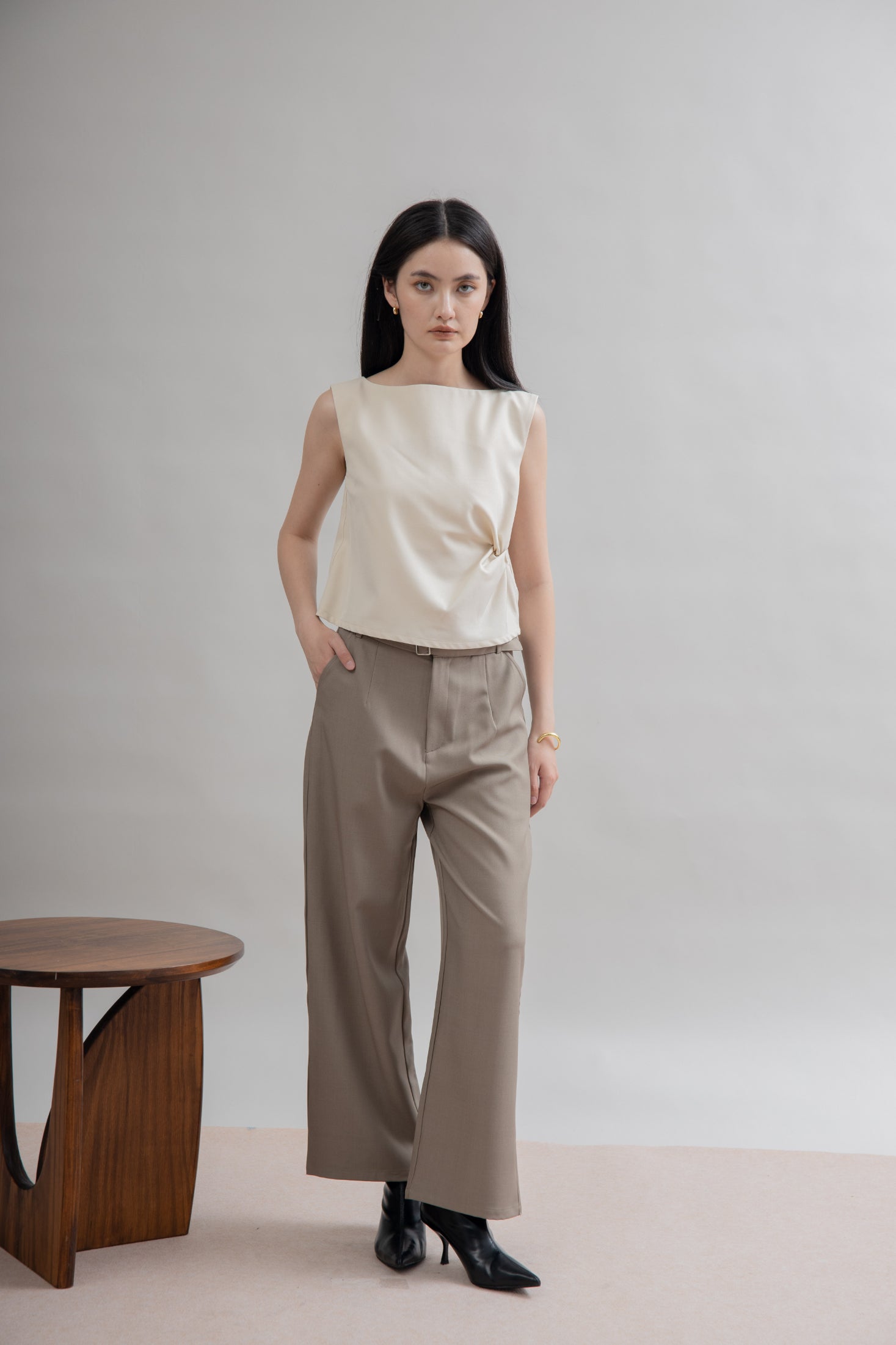 These straight-cut trousers offer a clean, elongating silhouette with just the right amount of stretch. Crafted from a smooth blend of 95% polyester and 5% spandex, they move comfortably with you while maintaining their structure. Finished with a matching fabric belt for a coordinated, cinched look—perfect for dressing up or keeping it relaxed with your favorite basics.