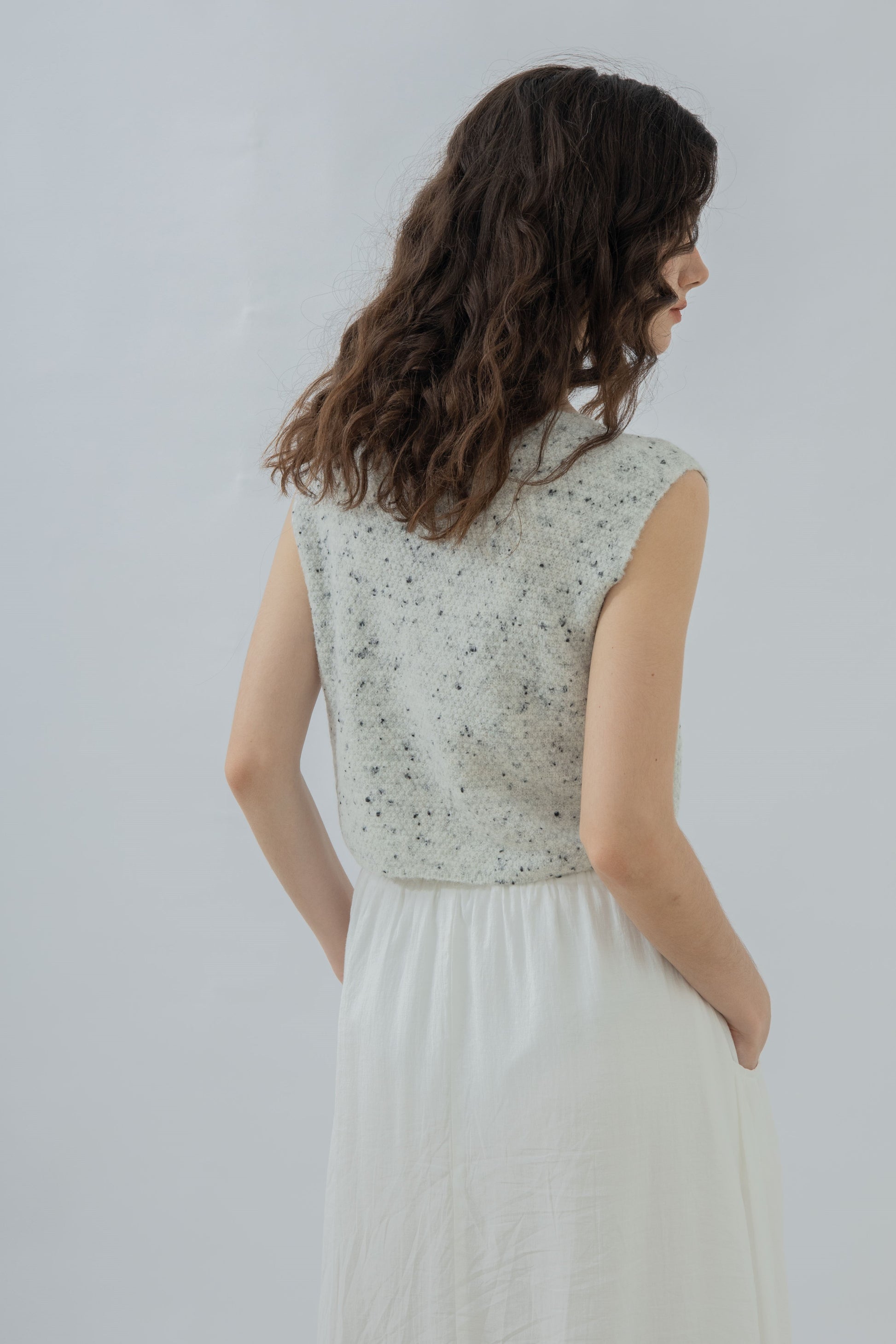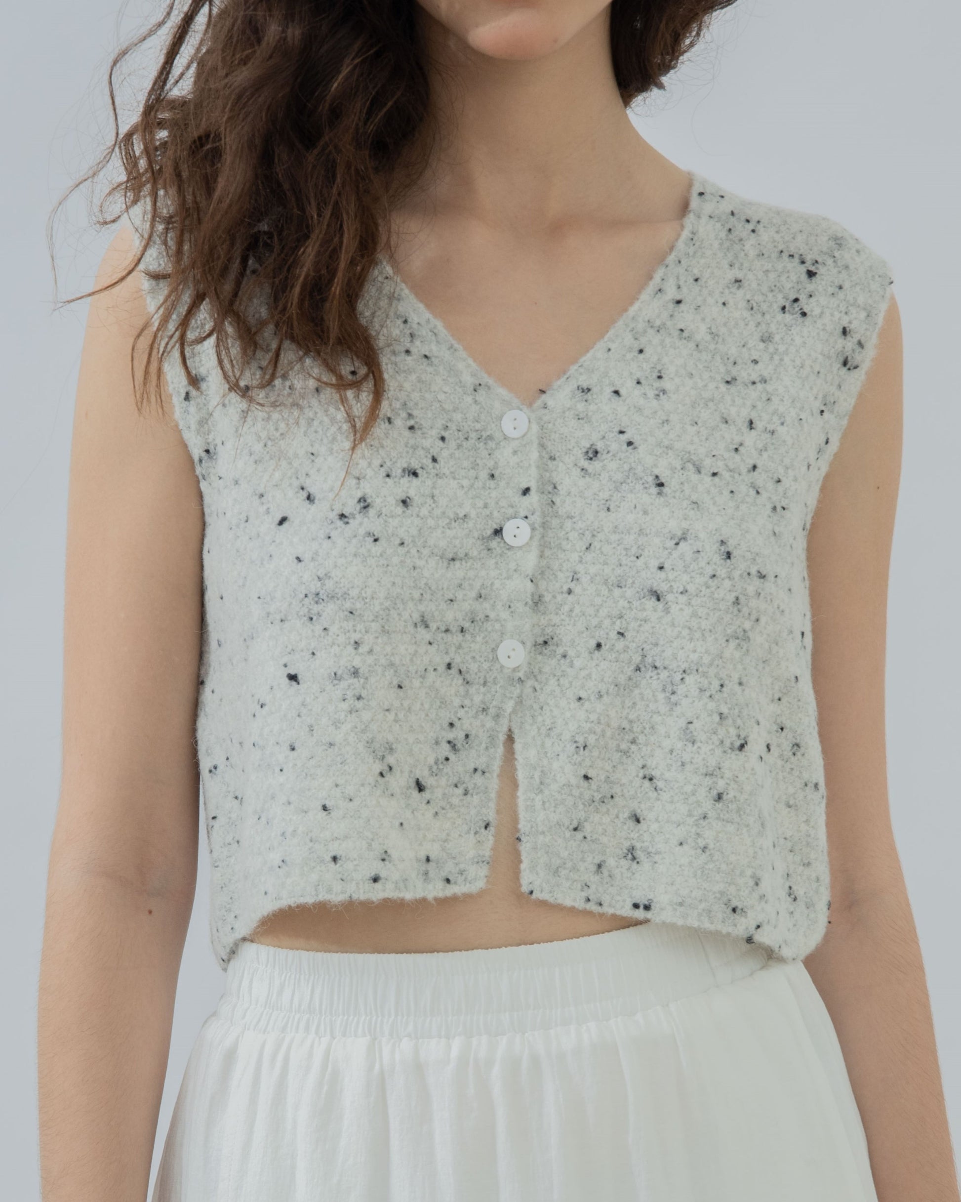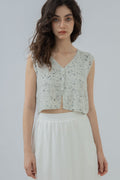 The V Neck Button Down Crop Knit Top is a perfect blend of comfort and style, crafted from 8% Wool, 45% Acrylic, 45% Polyester, and 2% Spandex. Featuring a unique knit texture and a flattering V-neck design, this sleeveless top offers breathability and comfort, making it ideal for layering or wearing solo. Its versatile design pairs easily with a variety of outfits, providing a chic, lightweight option for any occasion.